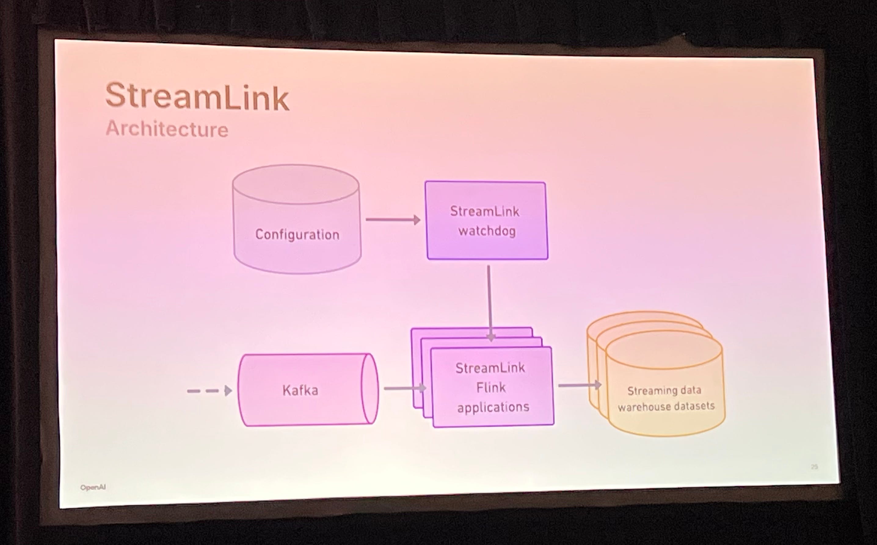 Insightful talk about OpenAI’s Flink infrastructure in the context of data ingestion. OpenAI uses YAML files for topic configuration (surprise) with the ability to add any topic for data lake ingestion. I also liked the clever use of Airflow sensors to mark partitions as completed.