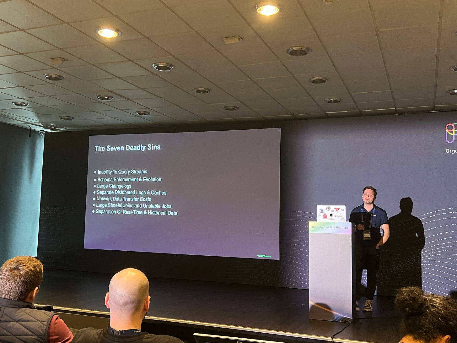 The event felt on the smaller side. Only a handful of sponsors and no real “expo hall”. When talks started, the hallways immediately emptied, which to me indicates the large number of engineers in attendance. And whenever I talked to someone in the crowd, they almost always ended up being an engineer or a manager closely involved in using or building on top of Flink.